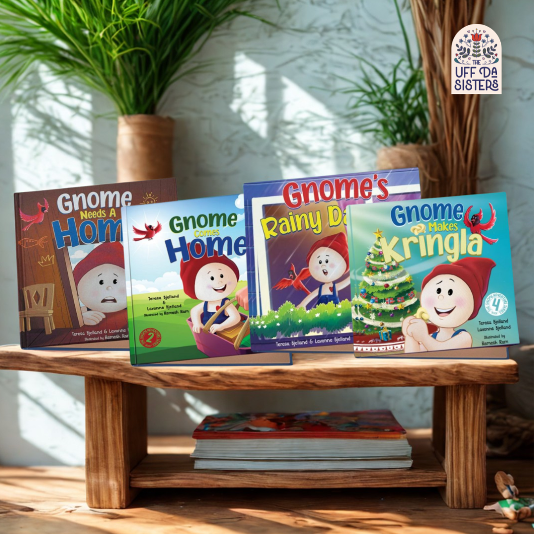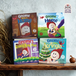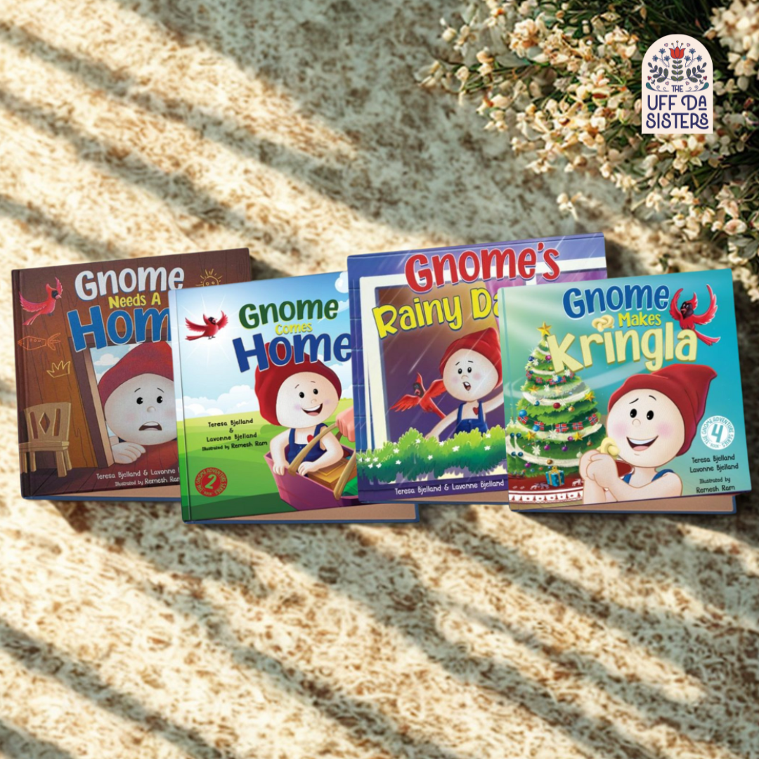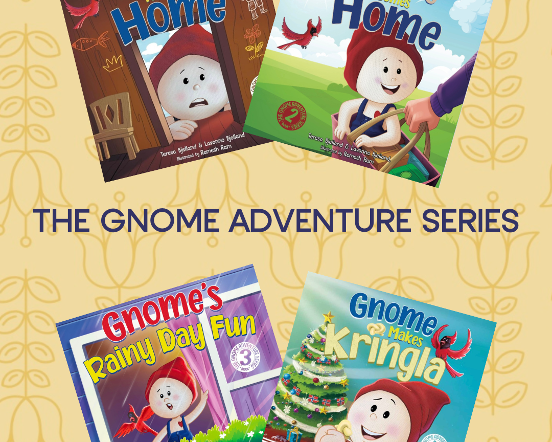 Follow the gnome from wishing for a home and family in the toy store…to going home with a new family…to getting stuck inside on a rainy day…to making Kringla, a Norwegian-American treat, with Grandma at Christmas time.