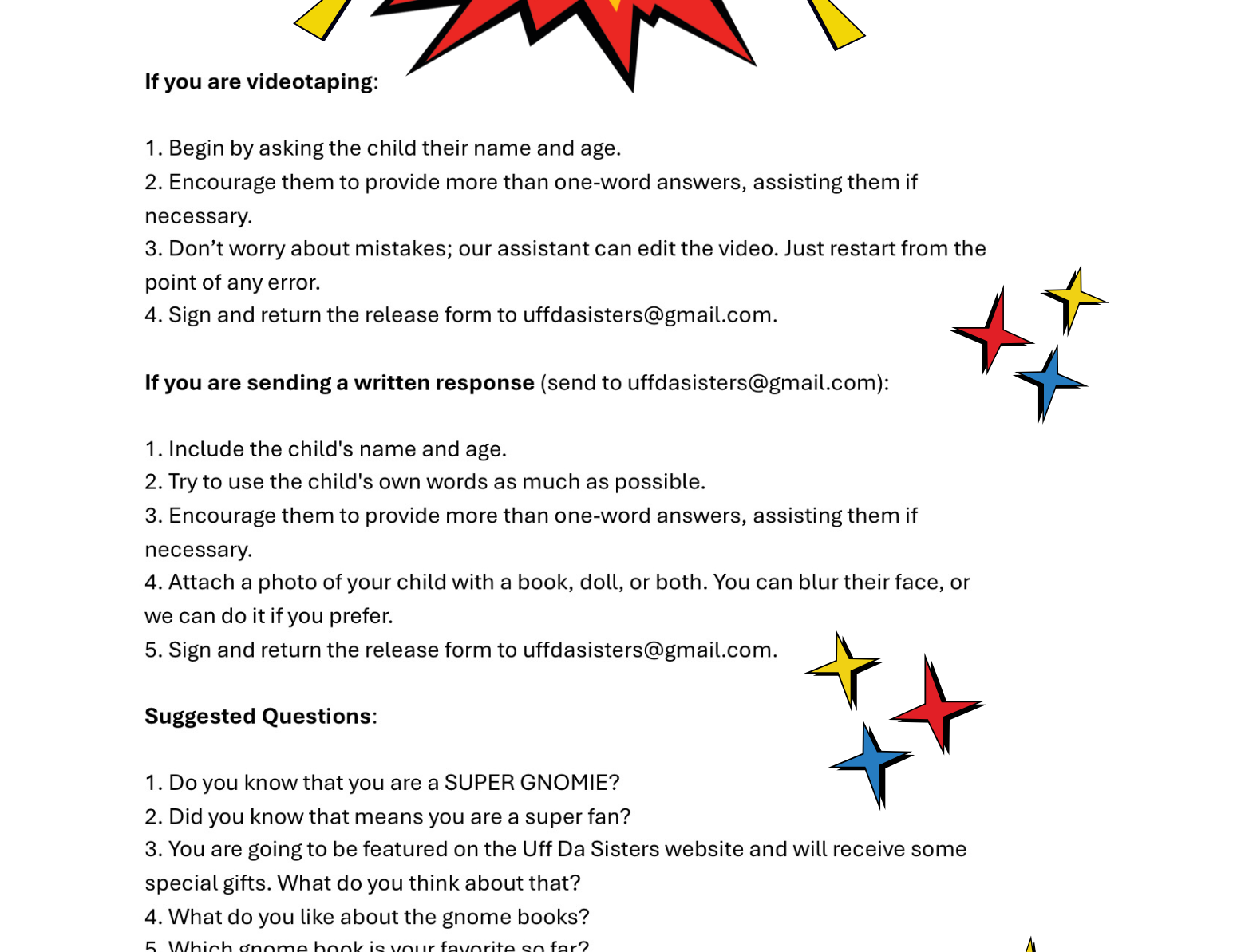 - Attach a photo of your child with a book, doll, or both. You can blur their face, or we can do it if you prefer.
