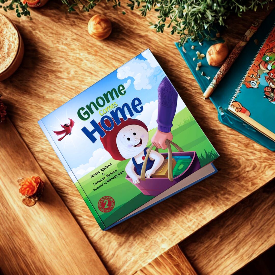 Continue your journey in The Gnome Adventure Series with the second book, Gnome Comes Home. This charming hardcover children's book tells the story of a gnome who embarks on a journey to find his perfect family. Let your little ones join the fun on this magical adventure!