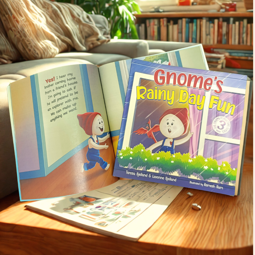 What is Gnome to do when plans for outdoor fun are dashed by rain? Gnome taps into imagination and family for a day filled with laughter and creativity, proving that even rainy days can be brimming with excitement and joy.
